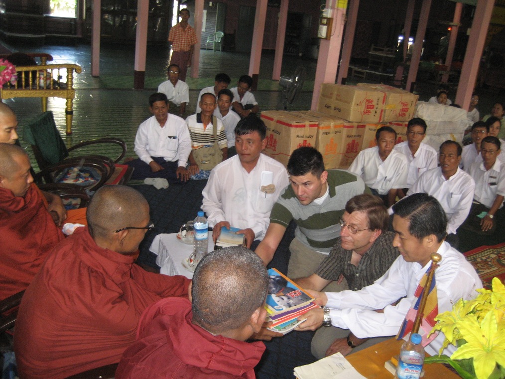 The actual presentation occurred when Hector, Thant and I handed a small stack of books to a monk. We did this several times to about four of the monks.