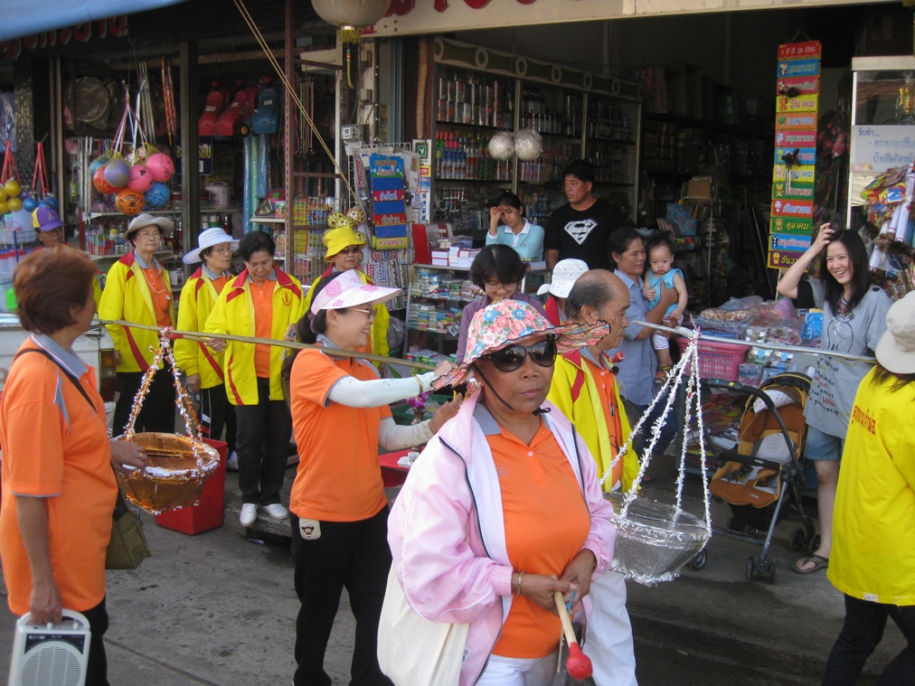 I’m told that this particular celebration is particular to Chinese Thais, not Chinese in general, and varies greatly from town to town in Thailand. I think the Chinese temple around the corner from my house toward the main road (yellow teardrop on our map) is involved with it, but am not sure.