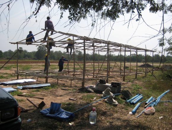 We are just getting started on our first child home in Opportunity Village. In April the first of our two families, now in rental homes, will move into the new house. We are looking to add one or if possible two more families in rental homes this year. The second picture is not going to be the new home. It’s the temporary shelter, and perhaps home, for the workers building the house. It’s over by the main canal on the west side of the property.