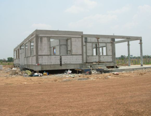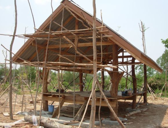 I have wanted Walai to contribute more to this blog, but she has not had the time lately. Last month Walai became the managing director of the foundation, and so has been pretty busy with literally everything that is going on there. She did have time to send me a pictures of the village’s first two buildings, which appear here. She also told me that 68 trees averaging about 30 feet high have so far been moved from the forest and planted in the village. I think we are shooting for about 200 trees this first time.