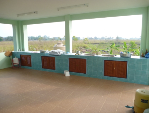 I have been in and out of Thailand since September, but have not had much time for this blog. Anyway, our first house has been finished since September although it was only about three weeks ago that our family moved in. We have temporary water and electric power hooked up. In a bit less than two months we will have the permanent water and power in. The second two pictures show the back porch cooking and eating area.