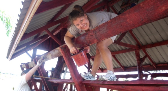 A Buffalo Tours volunteer working on our sala across the circle road from our first house.
