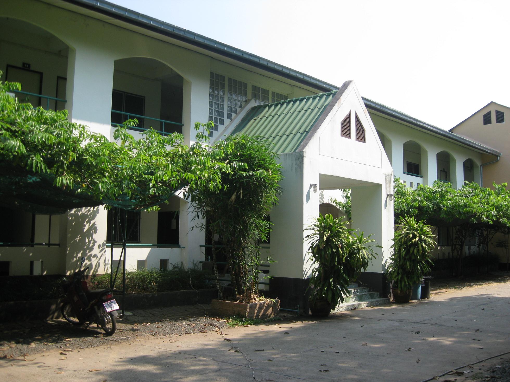 10 March 2009. Closest to the foundation property is an apartment building called Apakhanpinmai. It is right by the Nang Rong canal. This is not a hotel, the TV, refrigerator and even bedding must be supplied by the tenant. They do have the bed, mattress and a wardrobe closet.