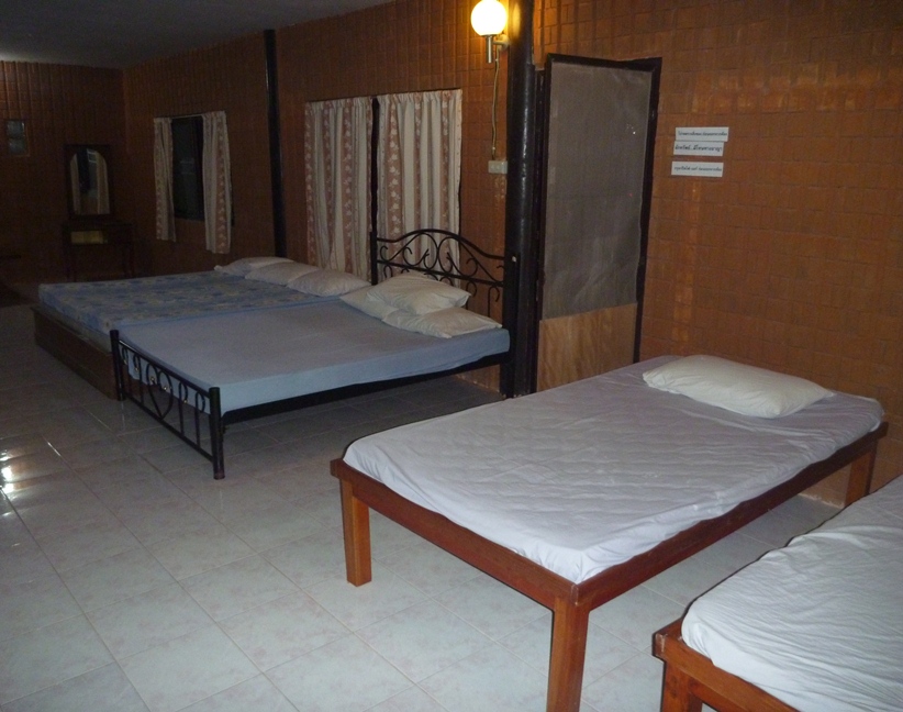 Rooms appear pleasant and clean. It has the largest restaurant of any hotel reviewed. I've eaten there several times and would class it with the better Nang Rong Thai restaurants. Rooms are 280 baht, 400 baht for a separate bungalow, and 1500 baht for a very large room for groups with 5 or 6 beds. All have air con, TV and hot water. Wi Fi is free. It reaches the restaurant, large group room and four of the 400 baht rooms.