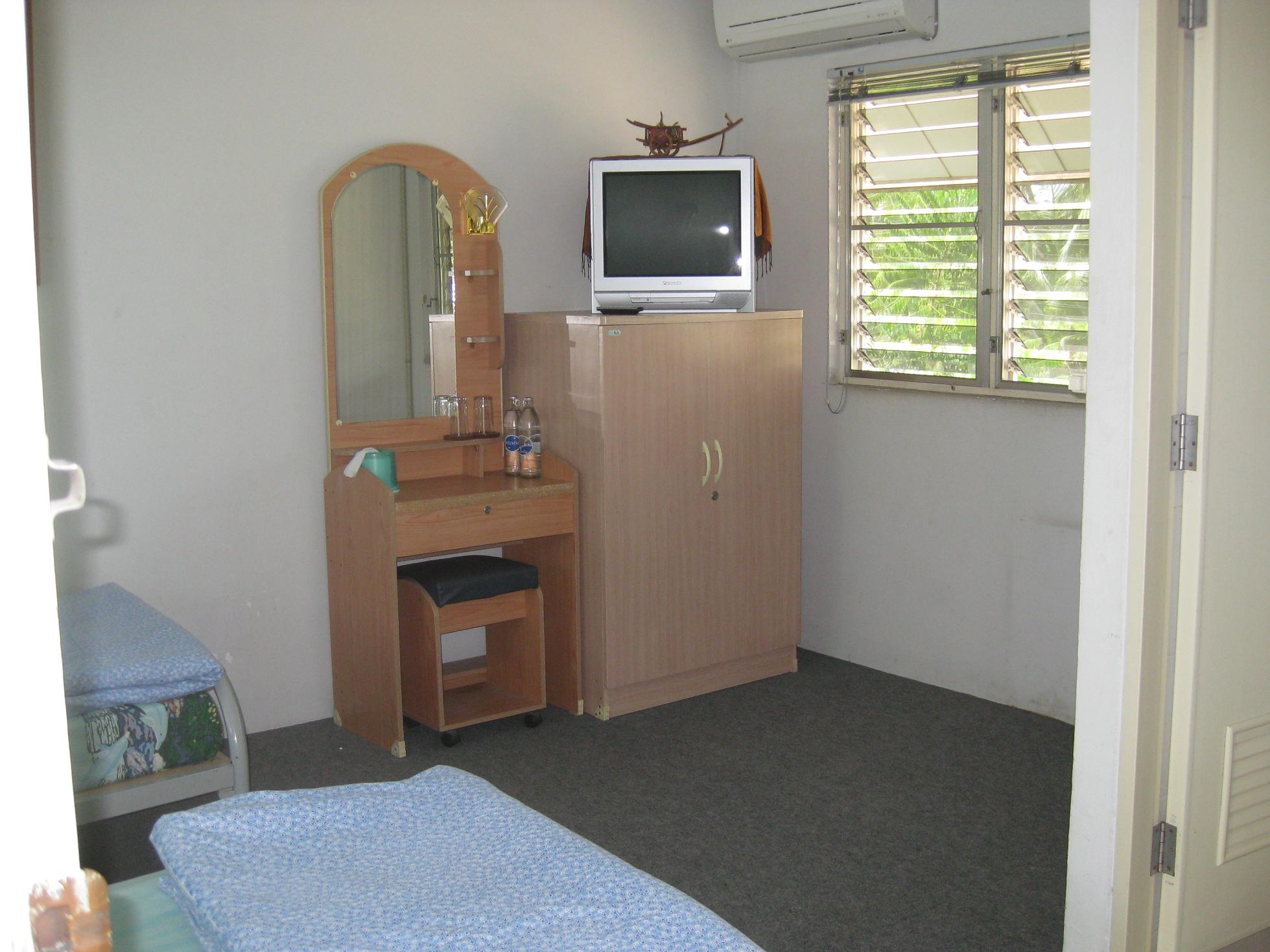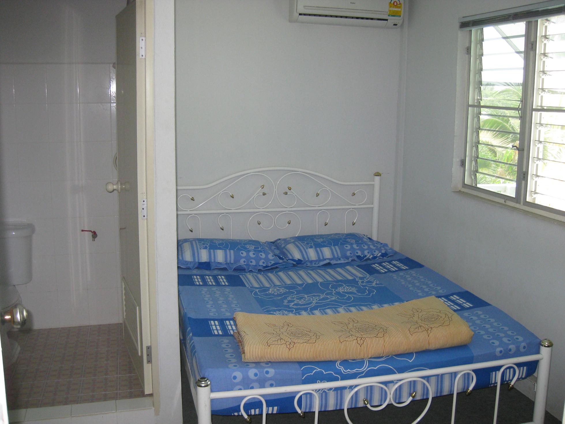 Rooms appear pleasant and clean. There is a small “restaurant” where either a continental (65 baht) or American (120 baht) breakfast is served. Rooms are 280 baht (fan), 400 baht with air con, and 700 baht for deluxe room with air con and free continental breakfast. All have TV, hot water, and free wi fi. The wi fi signal is pretty good in all but the lowest cost rooms, which are further from the router. There is also a computer hooked to the internet for 25 baht per hour.