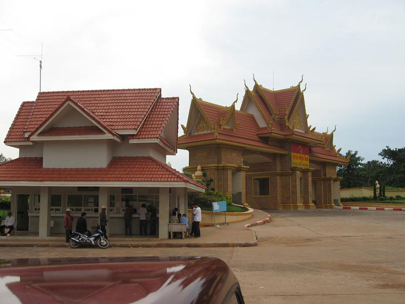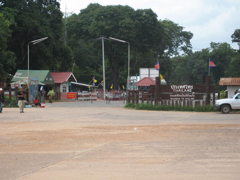 Border crossing. Border guards are in the near building. The gate beyond leads to a gambling casino on the Cambodian side that those from Thailand may access without officially crossing.
