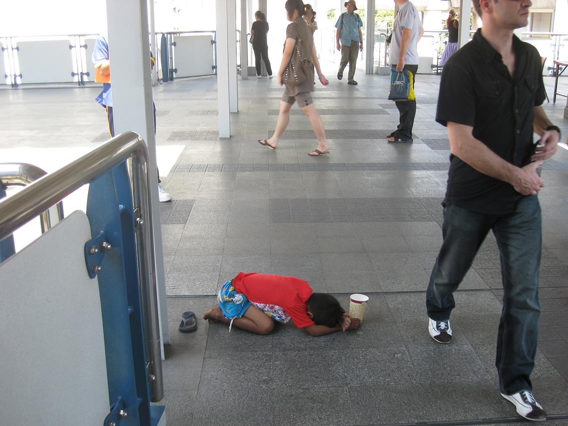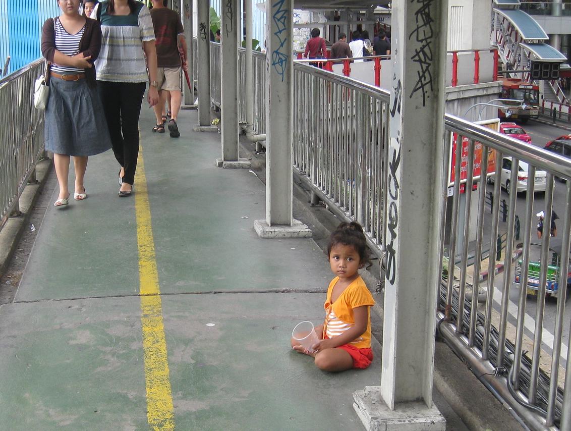 Since the Thai government has outlawed child begging, there have been fewer children out on the streets of Bangkok. They are still there, however. Most are probably controlled by the same gangs that control the other beggers. They are trained to cover their faces if they see a camera.