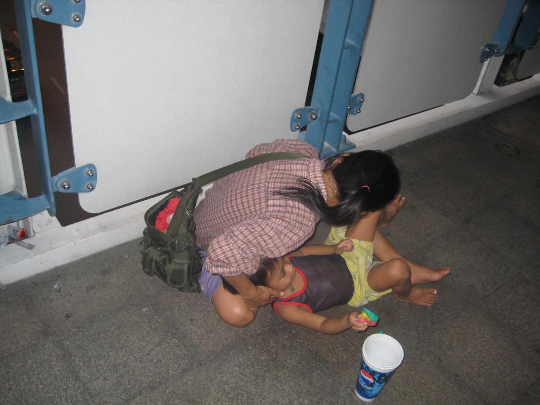 Nearly all the child beggars I have seen appear to be Khymer, which agrees with most of the available information. Others may come from Myanmar (Burma). These children are either "rented" from their families in Cambodia or in some cases perhaps kidnapped for this purpose. They range in age from about three months to ten years, after which they are not as appealing to passers by.