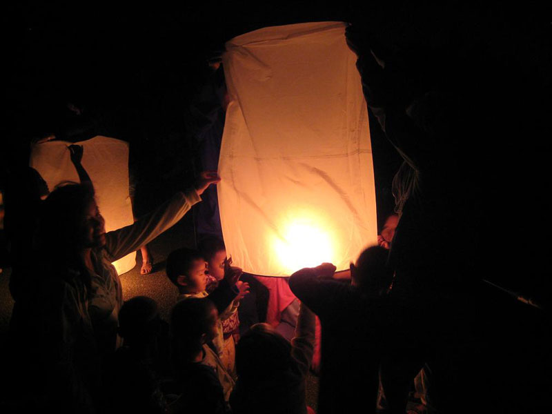 Launching a balloon for Loy Gratong with children from a Chiang Mai children’s home